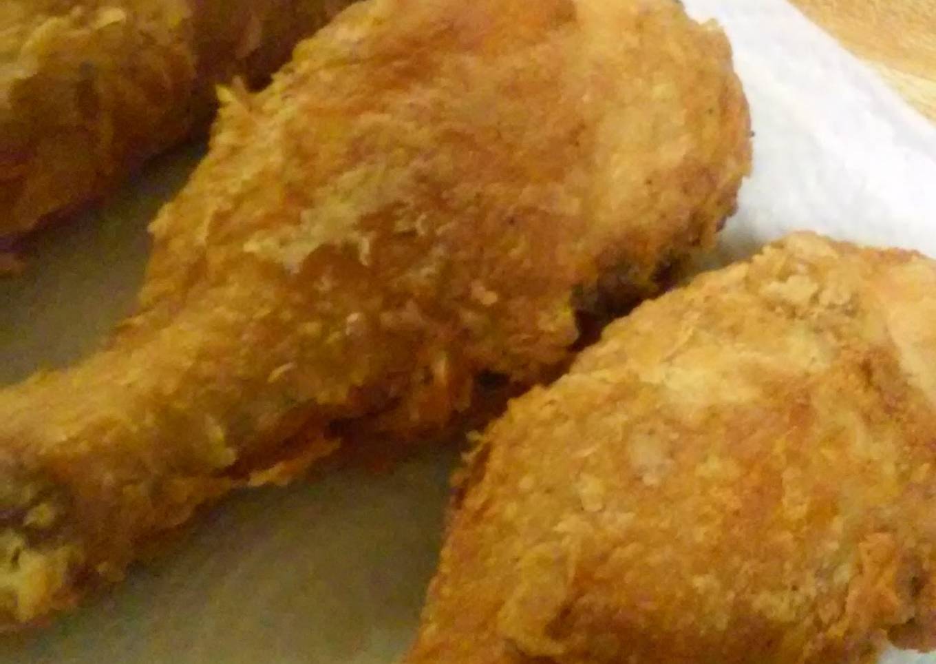 - When oil is heated, place chicken in the pan and fry until a golden brown on all sides. When chicken is done place it on a paper towel lined sheet pan and place in a oven set at 250 just to keep warm until all the chicken is ready to eat.